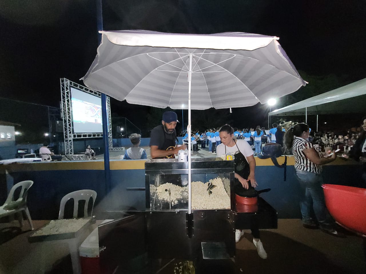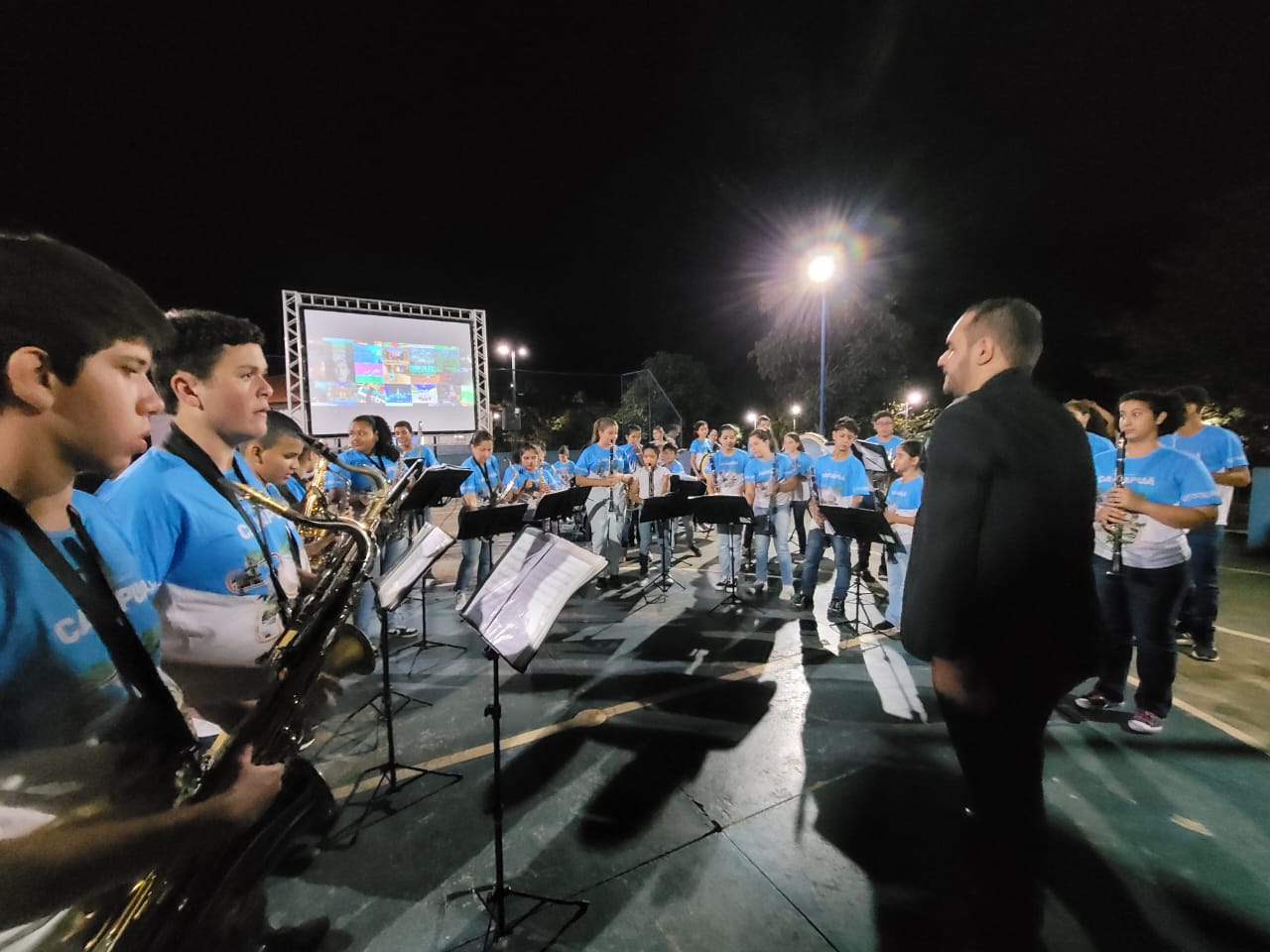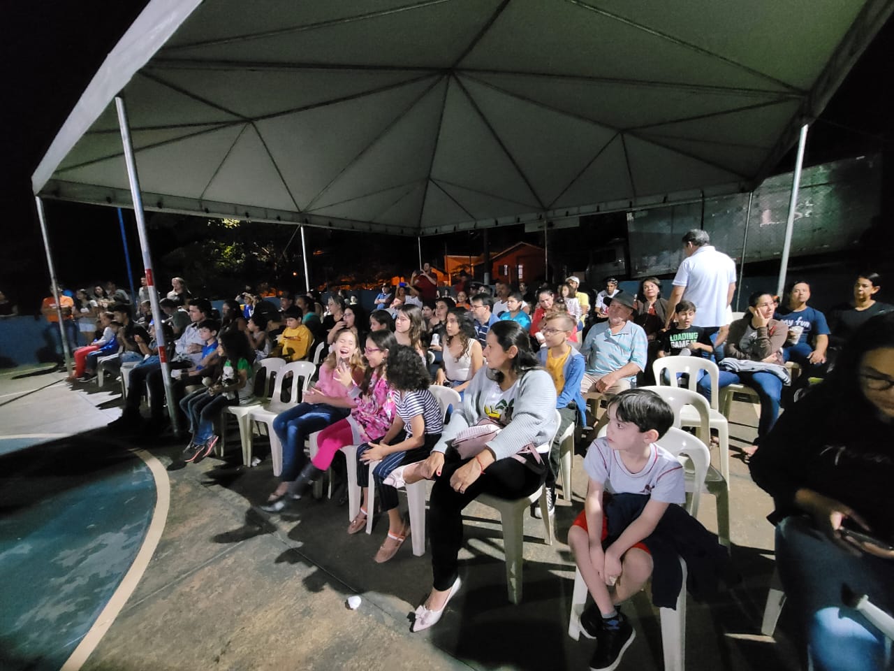 No bairro Vale do Sol, além de assistir a um super filme, as crianças e os adultos acompanharam a apresentação da Banda 30 de setembro e exposição de artesanato.