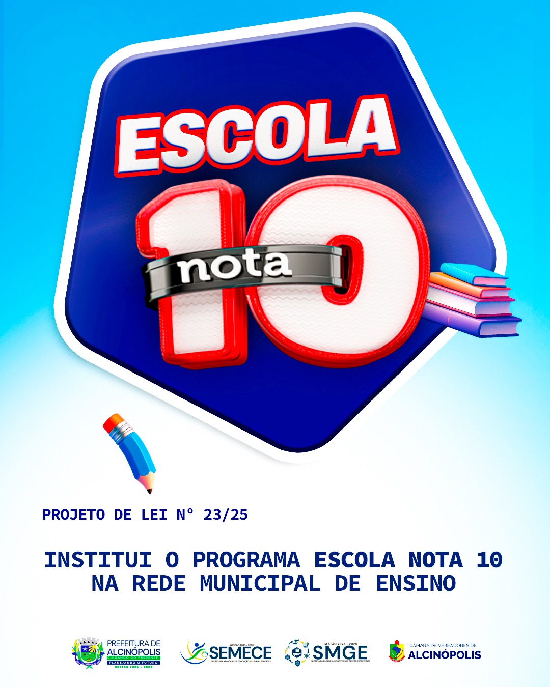 Alcinópolis aprovou o Programa “Escola Nota Dez” por unanimidade no Legislativo Municipal. A iniciativa, instituída por projeto de lei, altera o antigo sistema “Aluno Nota Dez”, voltado à premiação de estudantes isoladamente.