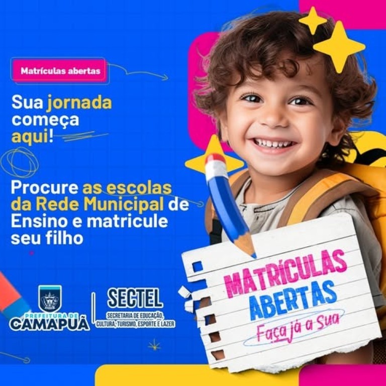 A Prefeitura de Camapuã informa que o período de matrículas para o ano letivo de 2024 na rede municipal de ensino já está aberto. Os pais e responsáveis dos alunos que já frequentam as escolas municipais devem confirmar a matrícula até o dia 21 de dezembro, apresentando o cartão de vacinação atualizado e um comprovante de residência.