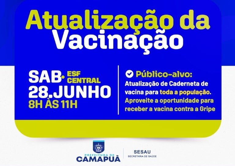 A Secretaria de Saúde de Camapuã realizará neste sábado, 28 de junho, uma ação voltada para a atualização das vacinas. O evento será realizado das 8h às 11h na ESF Central e tem como objetivo regularizar as vacinas em atraso, proporcionando a proteção adequada à população.