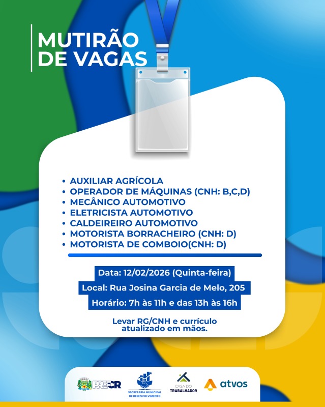 O mutirão integra um calendário de ações voltadas à empregabilidade e já teve edições anteriores ao longo deste ano com oferta de vagas variadas.