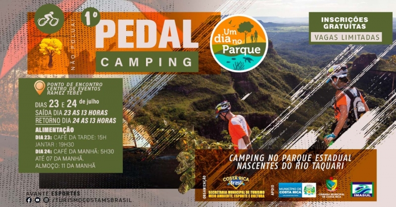 Acontece nos dias 23 e 24 de julho, no Parque Estadual das Nascentes do Rio Taquari, o 1º Pedal Camping, “um dia no parque”, um dos maiores eventos de cicloturismo da região Norte de MS.