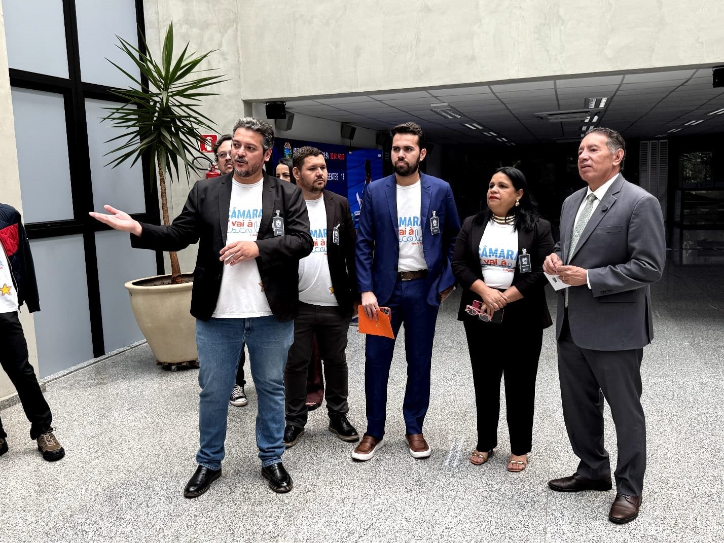 O presidente da Assembleia, deputado Gerson Claro (PP), recebeu a delegação no saguão e apresentou a estrutura administrativa e as competências do Parlamento. Os visitantes acompanharam explicações sobre a tramitação de proposições, desde a apresentação de projetos até a deliberação em plenário.