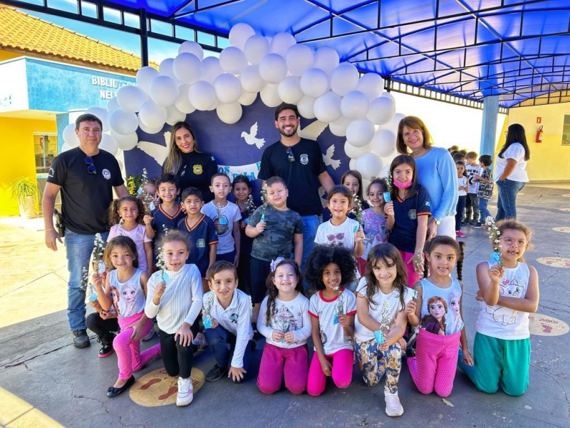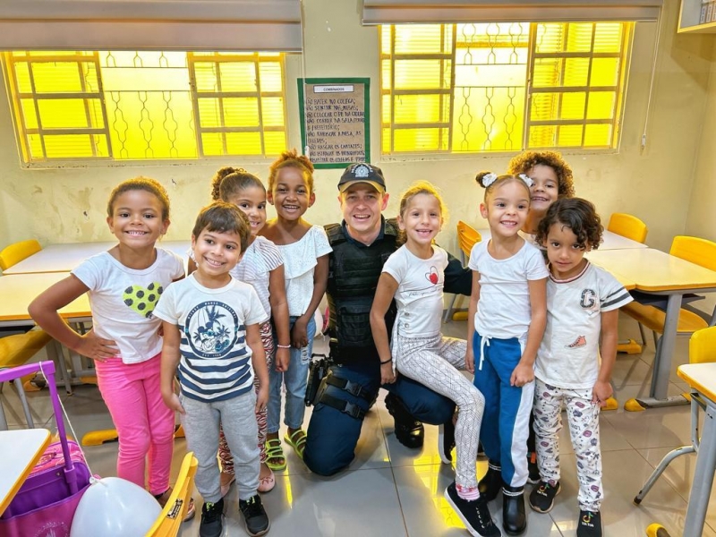 A iniciativa também ganhou reforço das forças de segurança pública do município. Queridinhos dos alunos, os policiais circulam pelas instituições como verdadeiros heróis, sempre recepcionados com abraços e sorrisos.