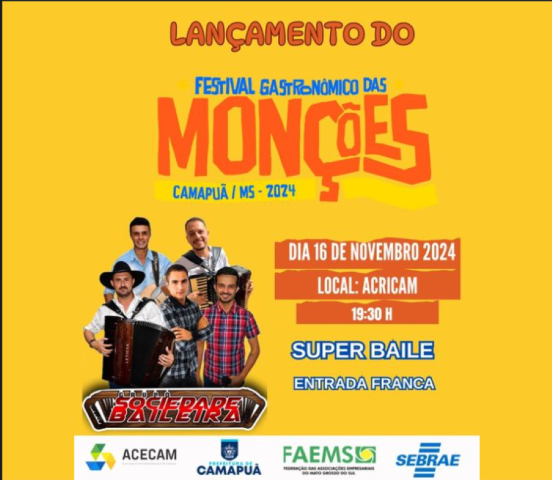 Festival Gastronômico das Monções tem lançamento com atrações em Camapuã neste sábado