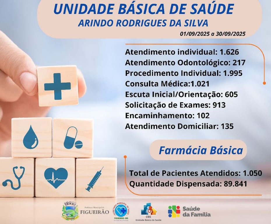 A Secretaria Municipal de Saúde divulgou o relatório de atividades da Unidade Básica de Saúde Arindo Rodrigues da Silva referente ao mês de setembro. O levantamento mostra aumento na procura por atendimentos, consultas e procedimentos, reforçando o papel da unidade como porta de entrada do sistema público de saúde no município.