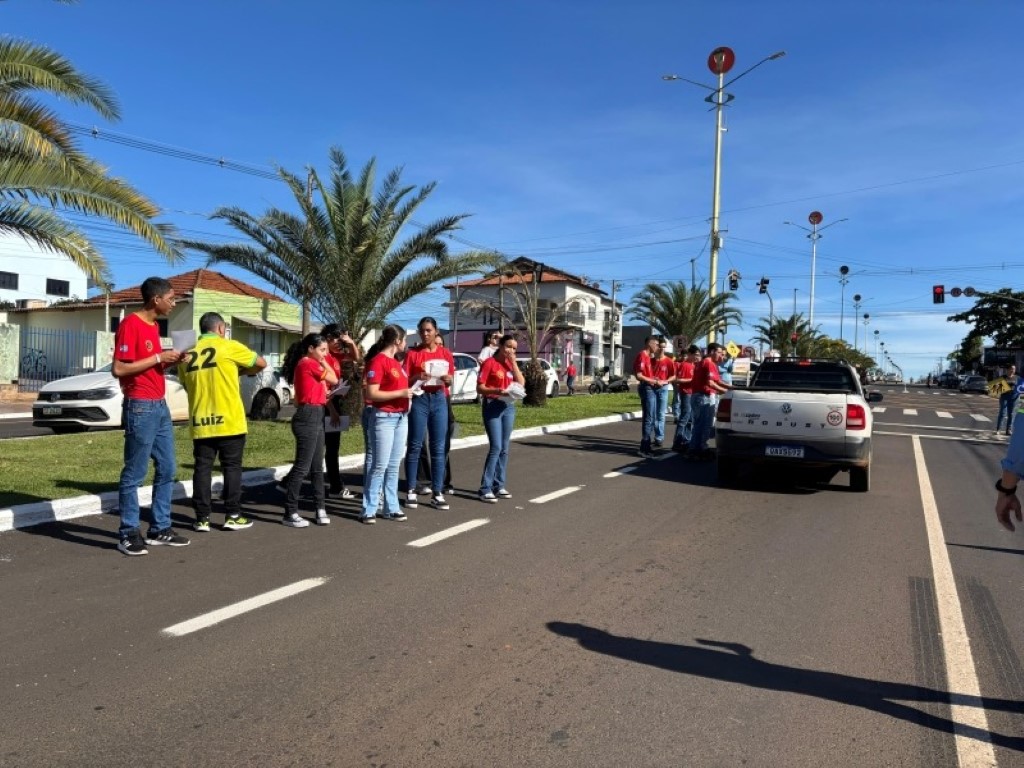 Alunos da Escola Cívico-Militar Professor Adenocre Alexandre de Morais estiveram presentes, demonstrando o engajamento da juventude na promoção da educação para o trânsito.