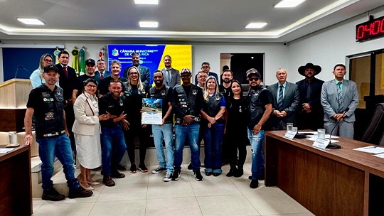 O presidente do Moto Clube, João Paulo Tosta, aceitou a moção em nome da diretoria, dos voluntários e dos apoiadores, que organizaram o evento que valorizou a cultura motociclista, com shows no Dia Mundial do Rock e arrecadação para entidades sociais.