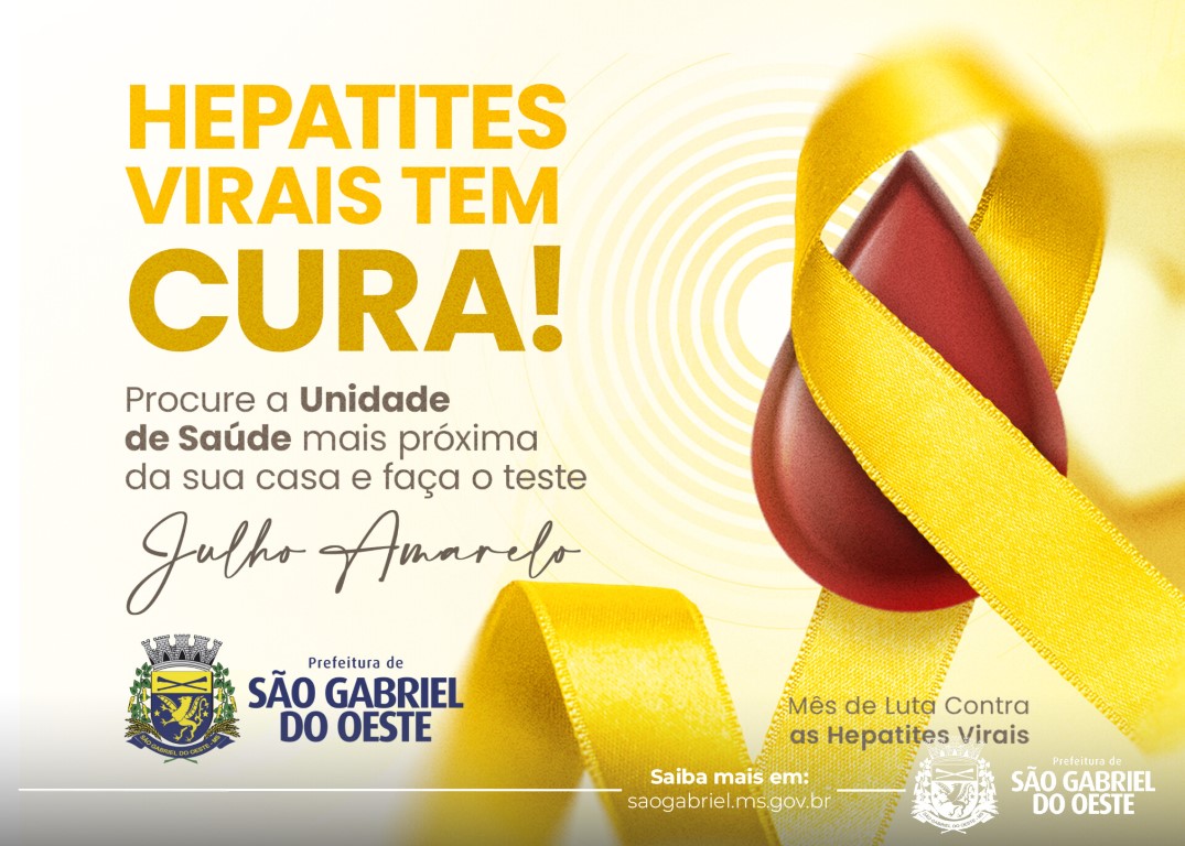 Em alusão à campanha Julho Amarelo, o município de São Gabriel do Oeste reforça neste mês as ações voltadas ao enfrentamento das hepatites virais. Promovida pela Secretaria Municipal de Saúde, a iniciativa oferece informações, testes rápidos, vacina contra hepatite B e orientações preventivas.