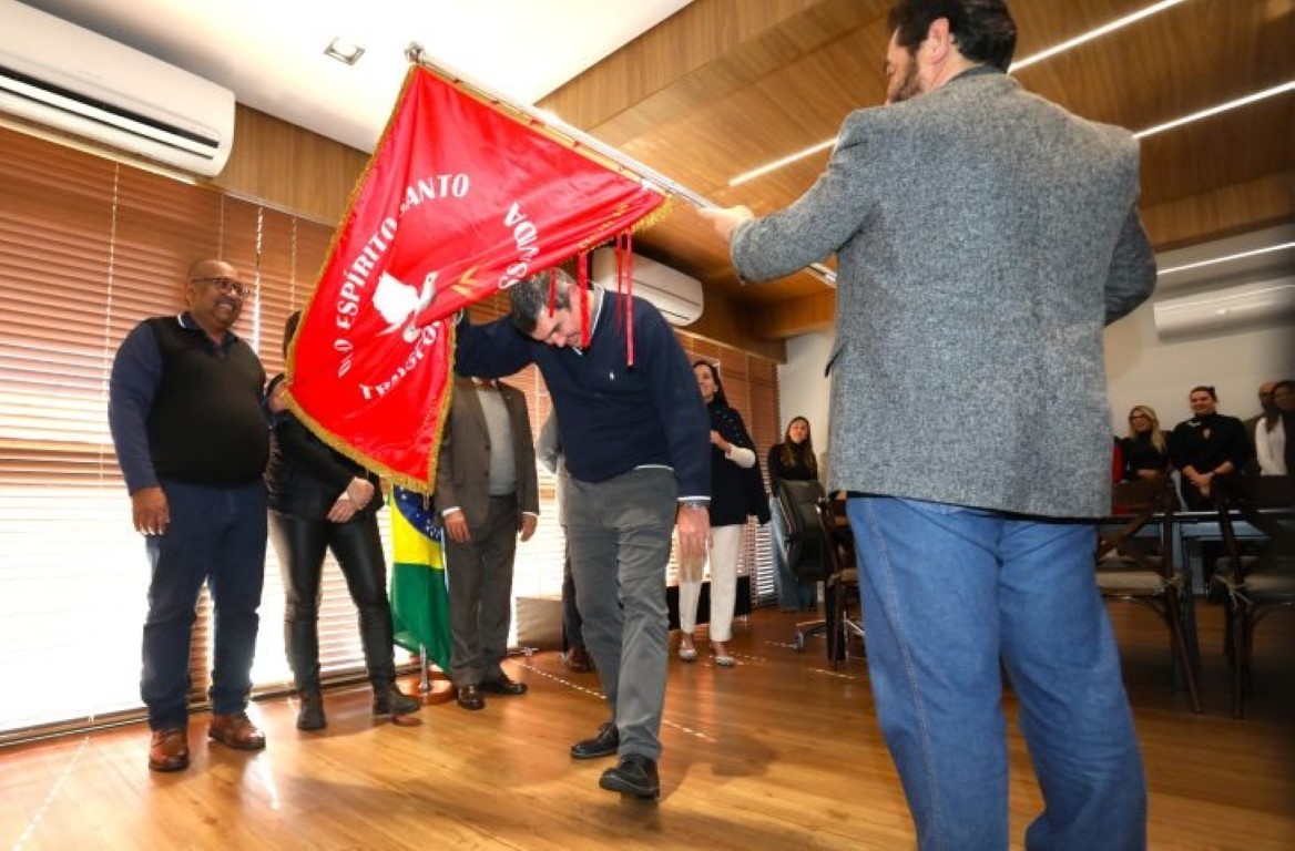 A tradicional Festa do Divino Espírito Santo vai ocorrer no próximo domingo (6), em Campo Grande a partir das 8h, no Cotolengo. O governador Eduardo Riedel recebeu a bandeira do Divino nesta tarde (2), na sala de reuniões da Governadoria. Um momento de fé e bênçãos, em uma celebração que faz parte da história do Mato Grosso do Sul.