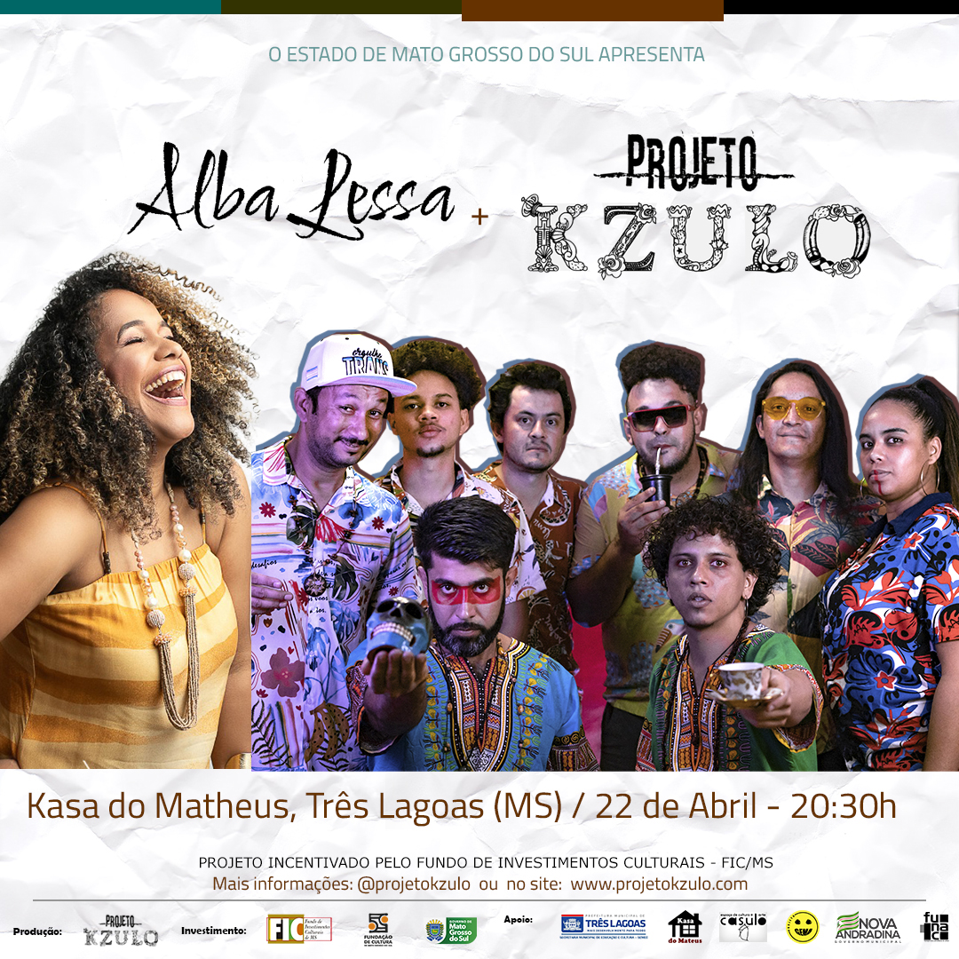 A abertura do evento fica por conta da cantora de samba Alba Lessa, que emociona e agita o público com sua voz potente. Ela tem uma grande expectativa pelo show e espera que as pessoas apreciem a música. “Estou um pouco ansiosa, porque é um show de abertura que evidenciará o projeto Kzulo, com todas as suas particularidades, e por buscar contribuir com o desenvolvimento artístico e cultural. É uma responsabilidade imensa no entendimento de que construir parcerias e pontes efetivas”, afirma.