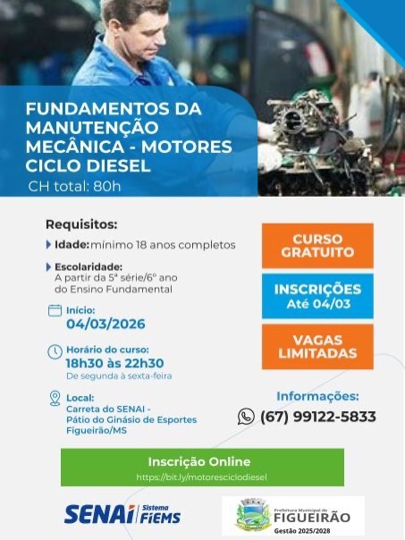 Figueirão passou a contar com a carreta móvel do Senai para oferta de cursos profissionalizantes. A unidade foi instalada no município com estrutura preparada para atender alunos em atividades de formação técnica.