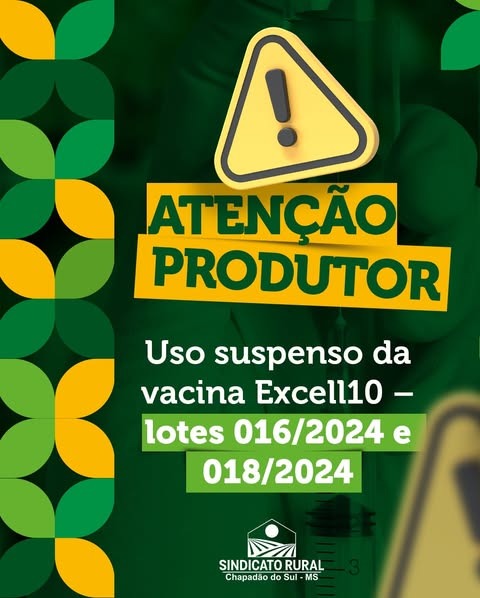 A informação foi divulgada pelo Sindicato Rural de Chapadão do Sul, que orientou os produtores a buscar esclarecimentos junto à IAGRO, responsável por prestar suporte técnico em casos relacionados à vacina.